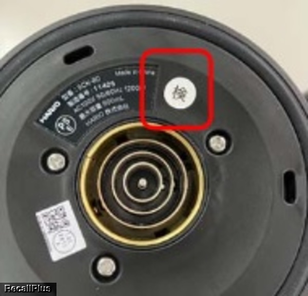 本体底面のマークの有無を確認の上、マークがなかった場合、HARIO Electric Kettle Lyra 自主回収専用窓口に連絡
