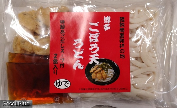 2025年8月7日-8月28日に、北野エース福岡パルコ店、北野エース博多阪急店で販売した「博多ごぼう天うどん2人前」において、賞味期限印字間違い「 本来、251107(2025年11月7日)と印字すべきところを、261107(2026年11月7日)と年を間違って印字」が判明したため、リコール(自主回収)する。これまで健康被害の報告はない。(リコールプラス編集部)