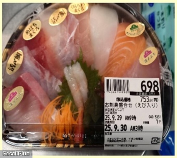 2025年9月29日に、イオン船橋店で販売した「お刺身盛合せ(えび入り)」において、特定原材料「えび」表示の欠落が判明したため、リコール(自主回収)する。これまで健康被害の報告はない。(リコールプラス編集部)