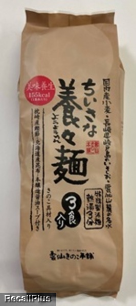 10/3-10/7に、明治屋 藤沢ストア、明治屋 高崎ストア、明治屋 藤沢ストア、紀ノ國屋 吉祥寺、明治屋産業 タベルト京都、浜屋 ココウォーク、浜屋 長与店、坂田冷凍、日本橋 長崎館で販売した「ちいさな養々麵3食入り」において、賞味期限の誤表記「 誤:26.12.31 (2026年12月31日) 正:26.1.31(2026年1月31日)」が判明したため、リコール(自主回収)する。これまで健康被害の報告はない。(リコールプラス編集部)