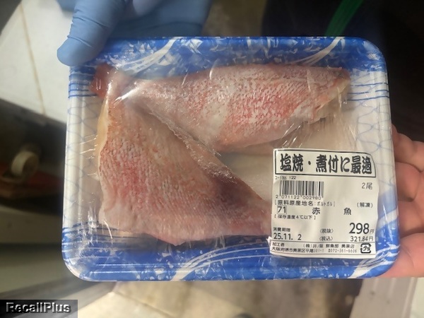 2025年10月19日に、業務スーパー堺美原店で販売した「赤魚」において、消費期限の貼り間違い「 本来消費期限、25/10/21(火)のところ25/11/02(日)のラベルを誤貼付」が判明したため、リコール(自主回収)する。これまで健康被害の報告はない。(リコールプラス編集部)