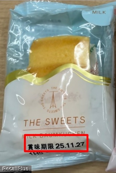 2025年7月20日-10月7日に全国で販売した「ザ・スウィーツ ミルクバウムクーヘン、冷やして美味しいフルーツバウム、あまおう苺バウムクーヘン」シリーズの一部において、カビの発生が確認されたため、リコール(自主回収)・返金する。これまで健康被害の報告はない。(リコールプラス編集部)
