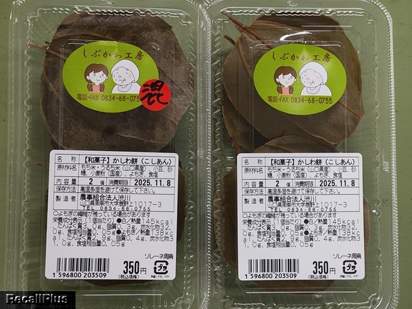 2025年10月24日に、「道の駅ソレーネ周南」で販売した「かしわ餅2個入り」において、消費期限誤記載「 正2025年10月25日 誤2025年11月8日」が判明したため、リコール(自主回収)する。これまで健康被害の報告はない。(リコールプラス編集部)