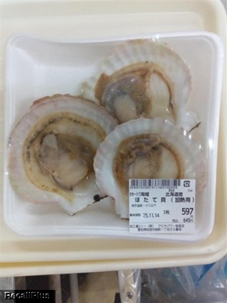 2025年10月27日に、ユニー アピタパワー岩倉店で販売した「ほたて貝(加熱用)」において、保存温度、消費・賞味期限表示間違い「 正)保存温度10℃以下 誤)保存温度-5℃以下 正)消費期限2025年10月29日 誤)賞味期限2025年11月14日」が判明したため、リコール(自主回収)する。これまで健康被害の報告はない。(リコールプラス編集部)