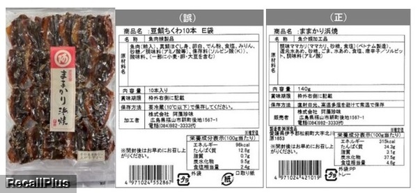 ちくわ豆ちくわままかり竹輪珍味一括表示ラベルシール誤表示誤表記誤記載誤印字誤記誤貼付アレルギーアレルゲン特定原材料表示漏れ表記漏れ記載漏れ印字漏れ欠落岡山駅おみやげお土産 |