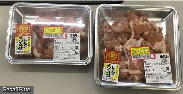 2025年11月5日に、マルナカスーパーセンター宇多津店で販売した「国産若どり手羽もと味付」において、ラベル誤貼付により、 アレルゲン表示「小麦」の欠落と商品名、原材料名、添加物、栄養成分を誤表示が判明したため、リコール(自主回収)する。これまで健康被害の報告はない。(リコールプラス編集部)