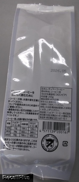 2025年11月12日-21日に全国ジュピター店舗で販売した「コーヒー豆(イタリアン)」において、賞味期限表示の欠落が判明したため、リコール(自主回収)・交換する。これまで健康被害の報告はない。(リコールプラス編集部)