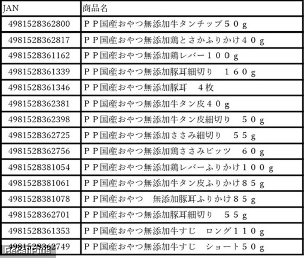 国産おやつシリーズサルモネラ菌検出ペット用品ペットフード |