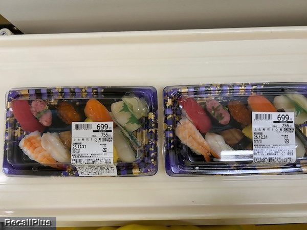 2025年12月31日に、ツルヤ明和店で販売した「上生寿司10貫、上生寿司40貫、特上生寿司24貫、おすすめ特上生寿司10貫、手巻寿司セット5本、手巻寿司セット10本、」において、消費期限表示の誤表記「正しくは、消費期限を2025年12月31日と表示すべき商品に、誤って2026年12月31日と表示したラベルを貼付」が判明したため、リコール(自主回収)する。これまで健康被害の報告はない。(リコールプラス編集部)