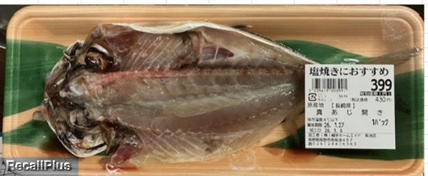 2026年1月5日に、綿半ホームエイド長池店で販売した「真あじ開き」において、期限超過表示「 消費期限2026/1/6と表示すべきところ賞味期限2026/1/27表示」が判明したため、リコール(自主回収)する。これまで健康被害の報告はない。(リコールプラス編集部)