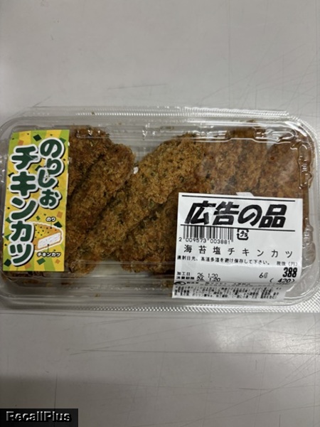 2026年1月20日-1月20日に、スーパーマツモト大原野店で販売した「磯辺風アジ半身フライ」において、商品名の誤貼付により、アレルゲンの表示「えび・かに・卵」の表示欠落が判明したため、リコール(自主回収)する。これまで健康被害の報告はない。(リコールプラス編集部)