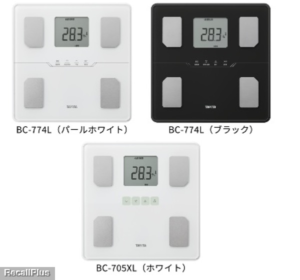 体組成計「BC-774L」「BC-705XL」の一部において、ソフトウエアに不具合により、2人以上の個人データを登録して体組成計をお使いの場合、登録番号2番以降の個人データが破損する場合があるため、無償交換を実施する。1人でご使用いただく場合は、問題ありません。(リコールプラス編集部)