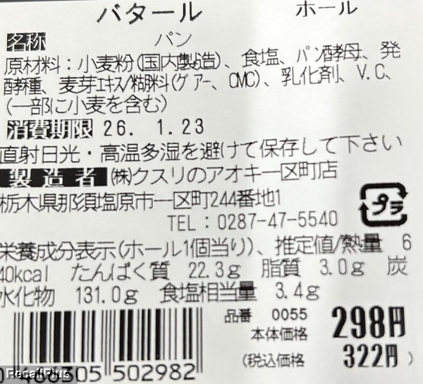 2026年1月21日にクスリのアオキ一区町店で販売した「バタール」において、食品表示ラベルを貼付せずに販売し、アレルゲン「小麦」表示の欠落が判明したため、リコール(自主回収)する。これまで健康被害の報告はない。(リコールプラス編集部)