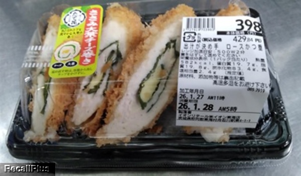 2026年1月27日に、イオン東海店で販売した「ささみ大葉チーズロール」において、誤って「出汁が決め手ロースかつ重」の表示ラベルを貼付したことにより、「乳成分」のアレルゲン表示が欠落したため、リコール(自主回収)する。これまで健康被害の報告はない。(リコールプラス編集部)