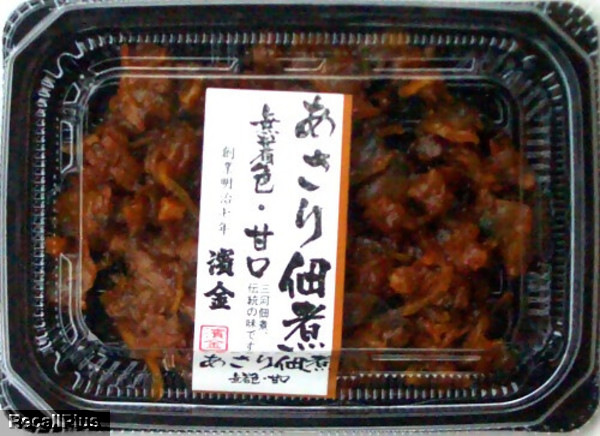 ①あさり佃煮、②味の花、③アーモンドかえり、④いわし甘露煮、⑤えびあられ、⑥えびちりめん、⑦かつお糸柳、⑧金胡麻いわし、⑨小女子、⑩小女子くるみ、⑪桜小えび、⑫さんま蒲焼、⑬しじみ佃煮、⑭しそ昆布、⑮白雪するめ、⑯生炊あみ、⑰生炊ちりめん、⑱葉唐昆布、⑲ひじきちりめん、⑳ピーナツみそ、㉑細切昆布、㉒まぐろ角煮