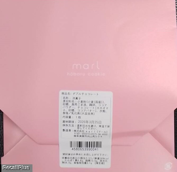 2026年2月8日-11日にmarl(マール) エキュート大宮店で販売した「ダブルベリー&ホワイトショコラ」に、誤って「ダブルチョコレート」の表示シールを貼付し、「乳成分」の表示が欠落したため、リコール(自主回収)・返金または交換する。これまで健康被害の報告はない。(リコールプラス編集部)