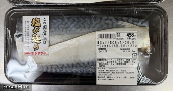 2026年2月24日に、PLANT5横越店で販売した「塩サバ」において、本来貼るべきラベル「塩サバ」に誤って「縞ホッケ」のラベルを貼ってしまい4パック販売したため、リコール(自主回収)する。これまで健康被害の報告はない。(リコールプラス編集部)