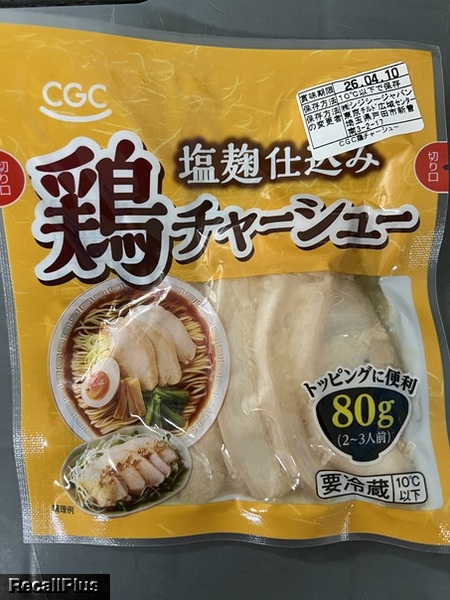 2026年2月27日-2月28日に、生鮮市場TOP流山セントラルパーク店で販売した「塩麹仕込み鶏チャーシュー」において、要冷蔵商品を常温商品として売り場展開してしまったため、リコール(自主回収)する。これまで健康被害の報告はない。(リコールプラス編集部)
