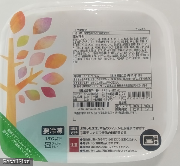 2026年1月23日-3月5日にECサイトで販売した「冷凍惣菜(サバの味噌煮弁当)」の一部において、パッケージと異なる中身(青椒肉絲)の商品が含まれ、アレルゲン「卵、豚肉、りんご」の表示が欠落したため、リコール(自主回収)・返金する。これまで健康被害の報告はない。(リコールプラス編集部)