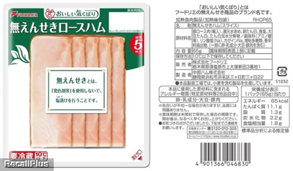 全国量販店等で販売した「おいしい気くばり無えんせきベーコン60g」において、誤って「おいしい気くばり無えんせきロースハム65g」の包材を使用した製品が一部、出荷されていることが判明したため、リコール(自主回収)する。これまで健康被害の報告はない。(リコールプラス編集部)