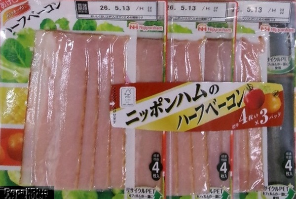 2026年3月30日以降に、スーパーなどで販売したニッポンハムのハーフベーコン標準4枚入り×3パック/×4パックにおいて、内容表示が異なるリニューアル前の表示ステッカーを、リニューアル後の商品に誤使用したことにより、「加工デンプン、くん液、クチナシ色素が当該商品に使用されているが、表示なし」「豚コラーゲン、増粘多糖類、香辛料、コチニール色素が表示されているが、当該商品に使用されていない」「原材料名の表示順番が異なる」「栄養成分表示の数字が異なる」等が判明したため、リコール(自主回収)する。これまで健康被害の報告はない。(リコールプラス編集部)