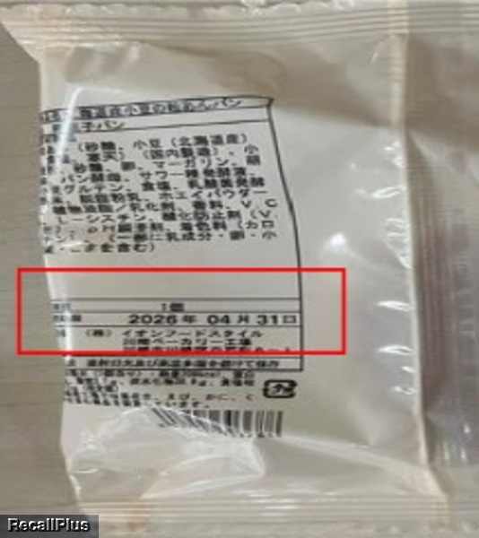 2026年3月30日にイオンフードスタイル6店舗で販売した「北海道小麦の粒あんパン」において、消費期限を「2026年3月31日」とすべきところ、誤って「2026年4月31日」と存在しない日付を表示したため、リコール(自主回収)・返金または交換する。これまで健康被害の報告はない。(リコールプラス編集部)