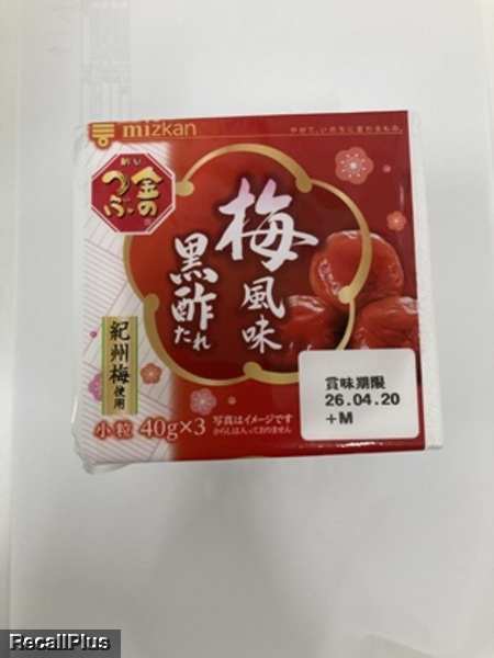 2026年4月8日に、カネスエ江南高屋店で販売した「①ミツカン金のつぶ梅風味黒酢たれ3P ②金のつぶたれたっぷり!たまご醤油たれ3P ③ミツカン金のつぶパキッ!とたれとろっ豆3P」において、本来冷蔵保管が必要な納豆製品(3品目)について、納品時の格納ミスにより一晩常温で販売したため、リコール(自主回収)する。これまで健康被害の報告はない。(リコールプラス編集部)